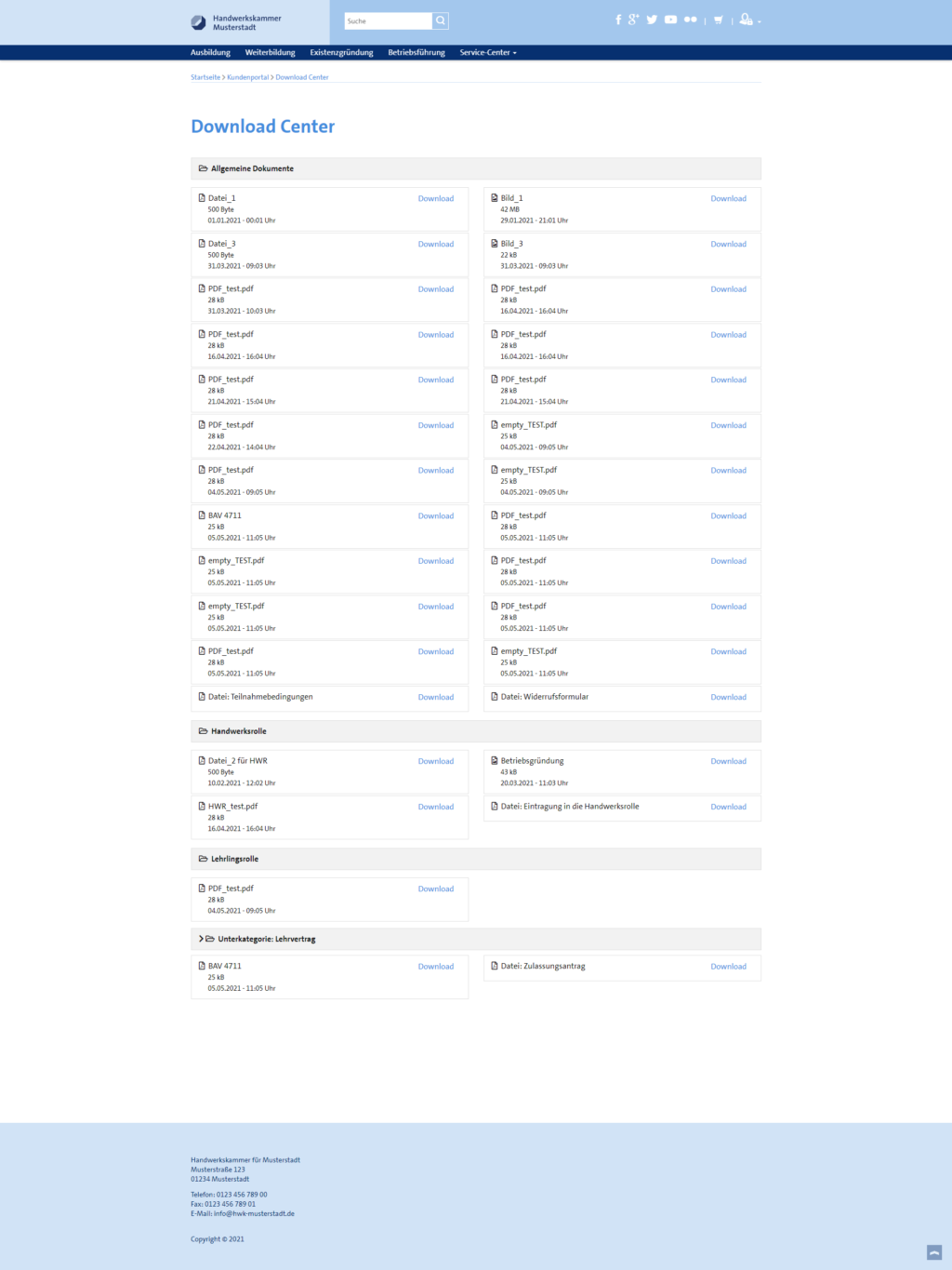 - Der Vorteil: Man konfiguriert das Download-Center an einer zentralen Stelle. Auf allen Seiten, auf denen es platziert wurde, wird es automatisch angepasst.