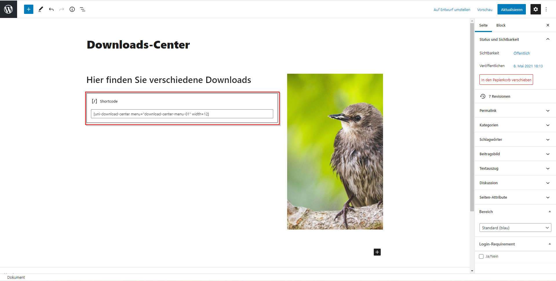 - Der Vorteil: Man konfiguriert das Download-Center an einer zentralen Stelle. Auf allen Seiten, auf denen es platziert wurde, wird es automatisch angepasst.